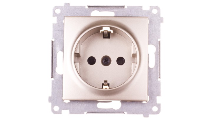 Simon 54 Gniazdo pojedyncze SCHUKO z/u 16A IP20 z przesłoną torów złoty mat DGSz1Z.01/44
