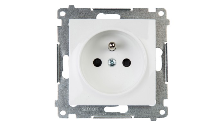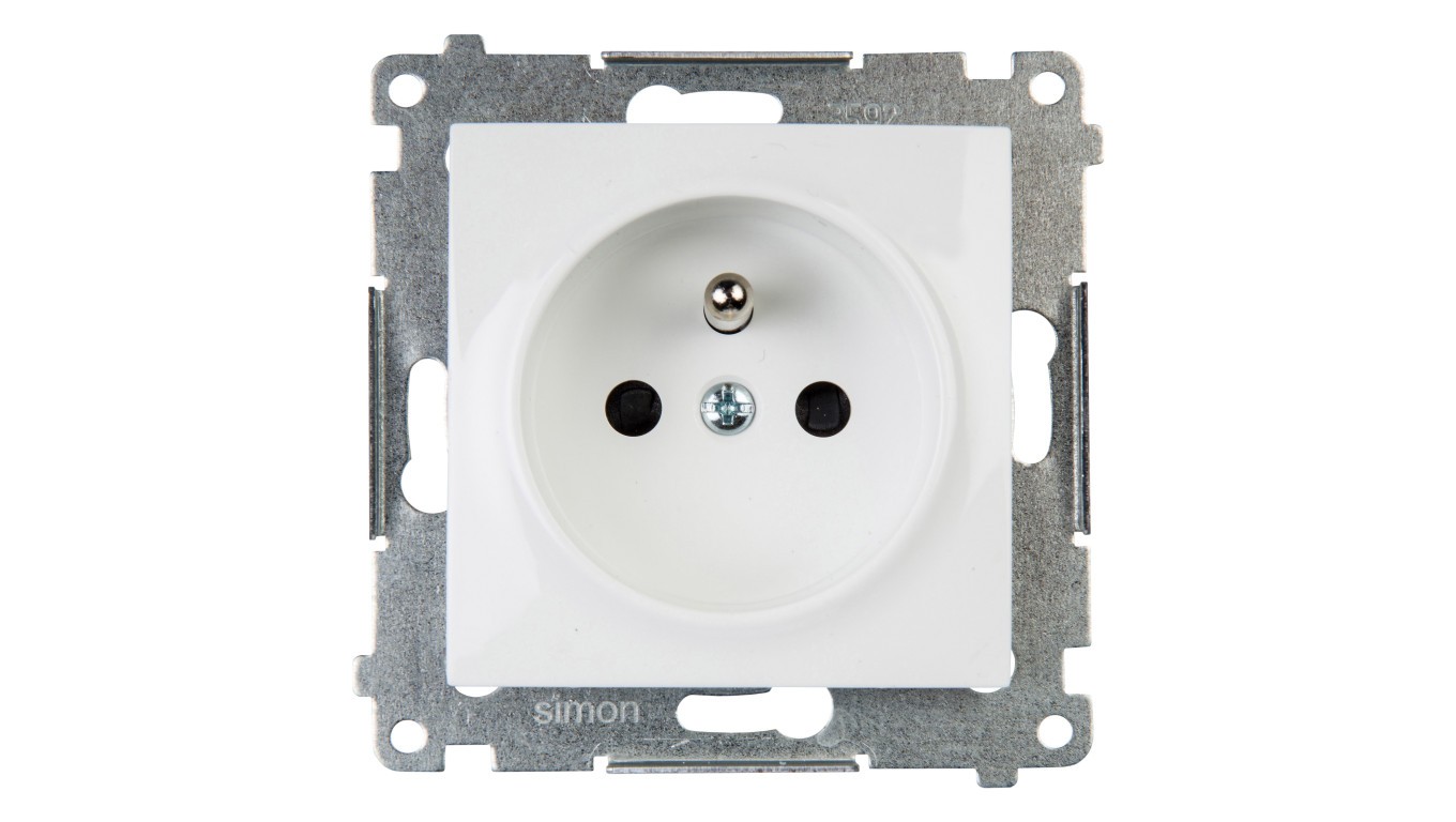 Simon 54 Gniazdo pojedyncze z/u 16A IP20 z przesłoną torów białe szybkozłącza DGZ1CZ.01/11