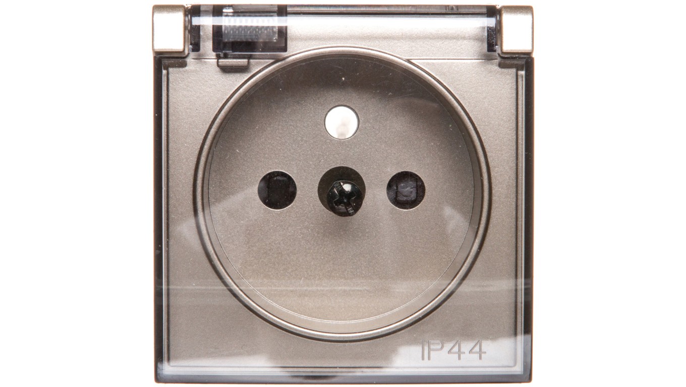 Simon 54 Pokrywa gniazda do wersji IP44 z przesłonami z klapką transparentną złoty mat DGZ1BUZP/44A