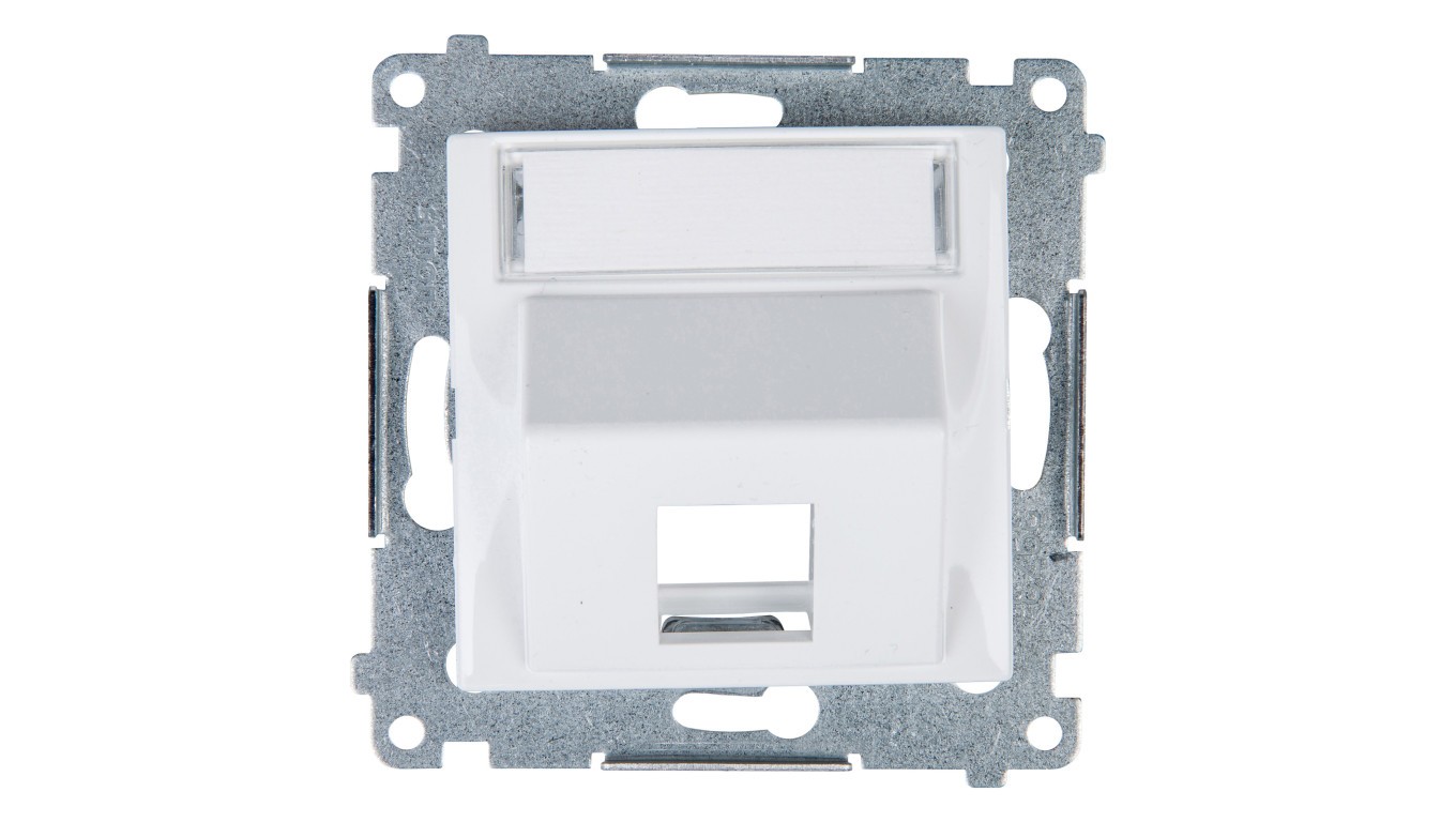 Simon 54 Pokrywa gniazda teleinformatycznego pojedynczego RJ Keystone skośna z polem opisowym biała DKP1S.01/11