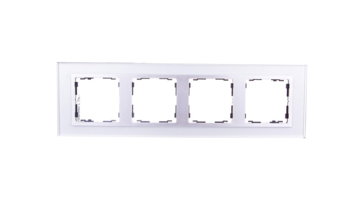 Simon 82 Ramka poczwórna pozioma szklana srebro/ ramka pośrednia aluminium mat 82947-62