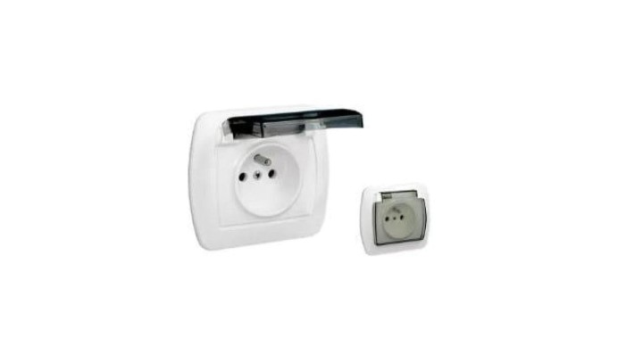 SIMON AKORD GNIAZDO POJED. Z/U BIAŁE Z K LAPKĄ IP44 BEZ PRZESŁON
