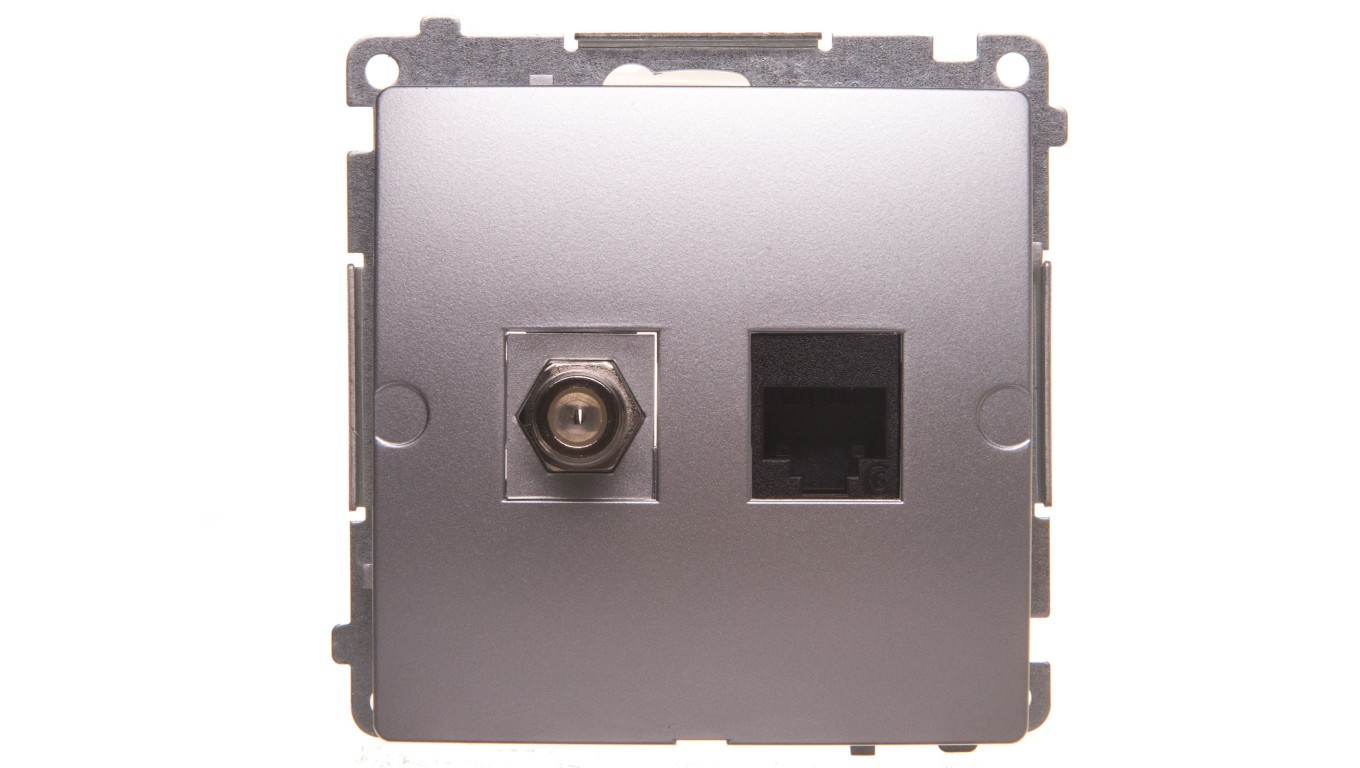 Simon Basic Gniazdo antenowe typu F + RJ45 kat.6 srebrny mat BMAFRJ45.01/43