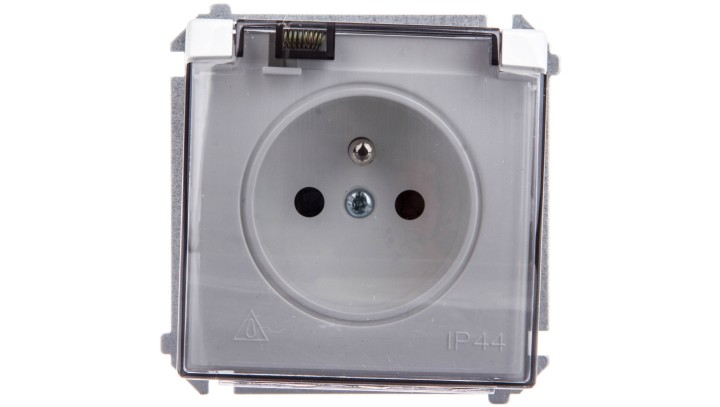 Simon Basic Gniazdo bryzgoszczelne z/u IP44 z przesłoną torów i klapką dymną białe BMGZ1Bz.01/11a