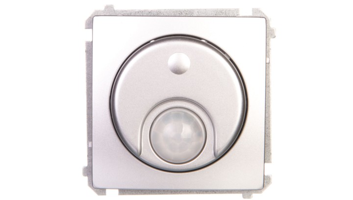 Simon Basic Łącznik z czujnikiem ruchu z przekaźnikiem z zabezpieczeniem 8A 230V srebrny mat BMCR11P.01/43