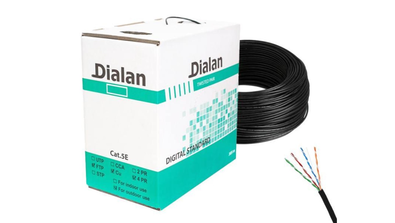 Skrętka komputerowa FTP 5E 100CU Dialan ekranowany, czarny, outdoor, zewnętrzny, PE, odporny na UV /305m/