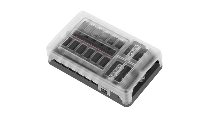 Skrzynka obudowa do bezpieczników samochodowych 32V / 30A 12 polowa z szyną ujemną i LED