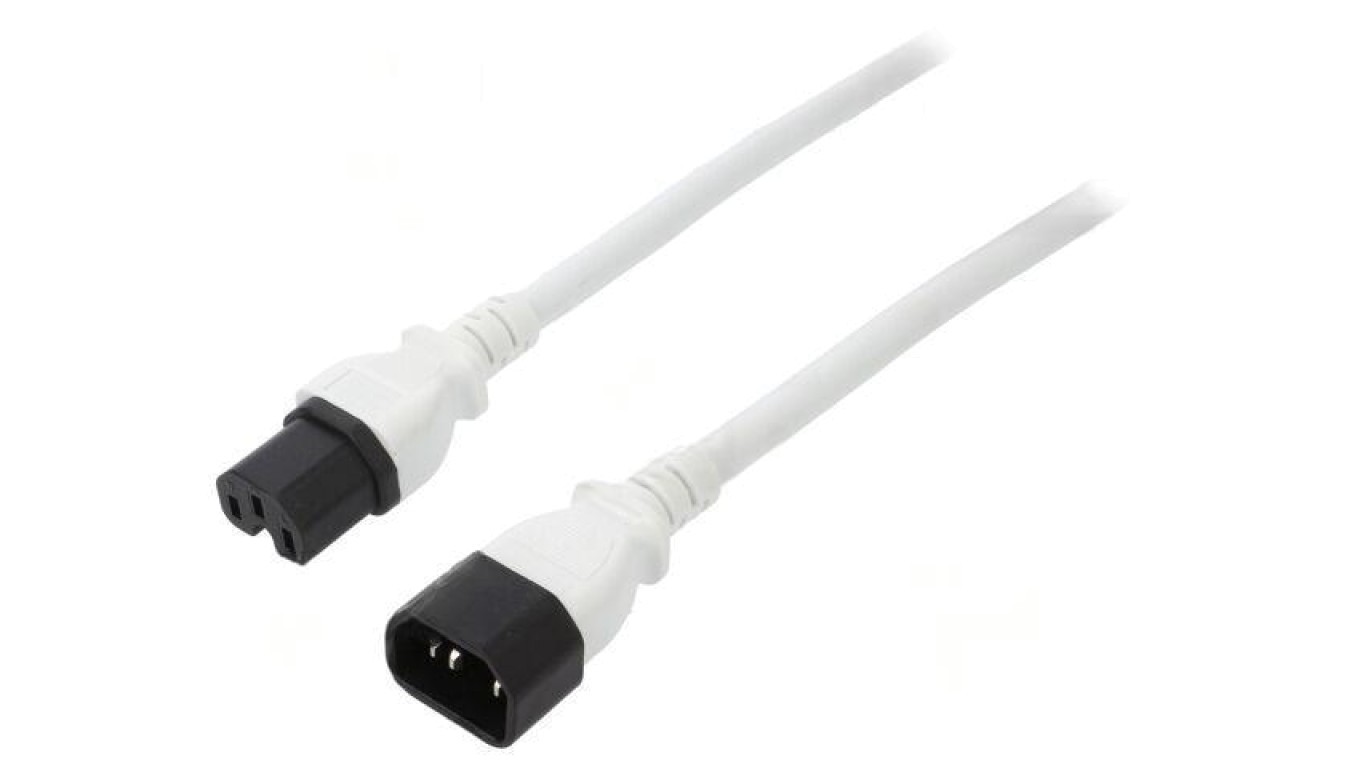 SN28-3/14/1.8WH Kabel: 3x14AWG, IEC C14 męski,IEC C15 żeński, 1,8m