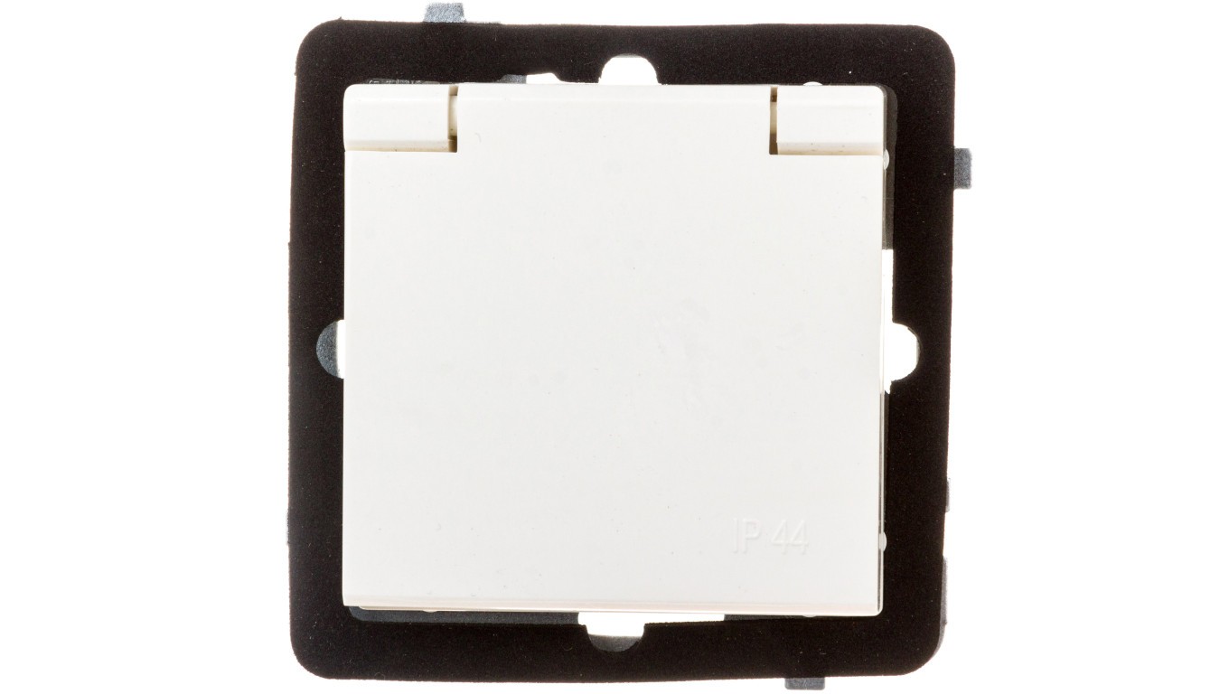 SONATA Gniazdo bryzgoszczelne z/u IP44 klapka ecru GPH-1RZ/m/27/w