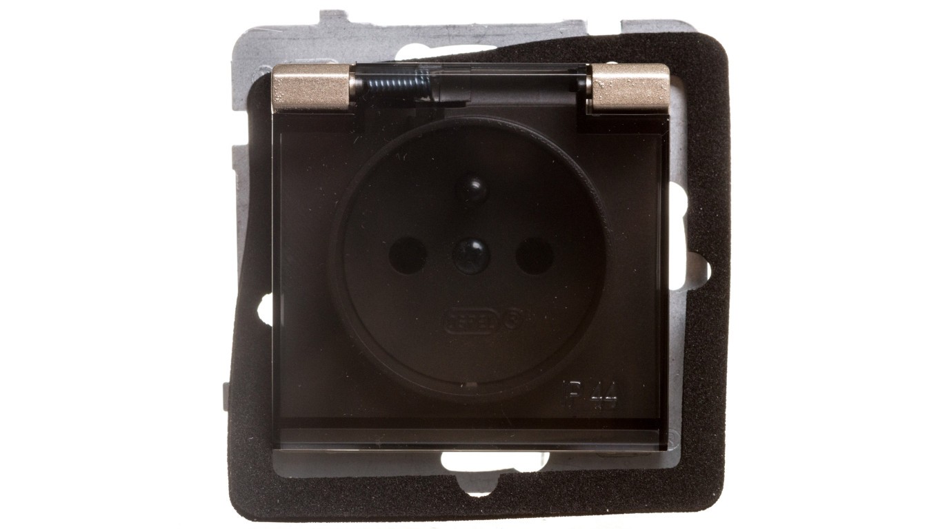 SONATA Gniazdo bryzgoszczelne z/u IP44 klapka przezroczysta szampański złoty GPH-1RZ/m/39/d