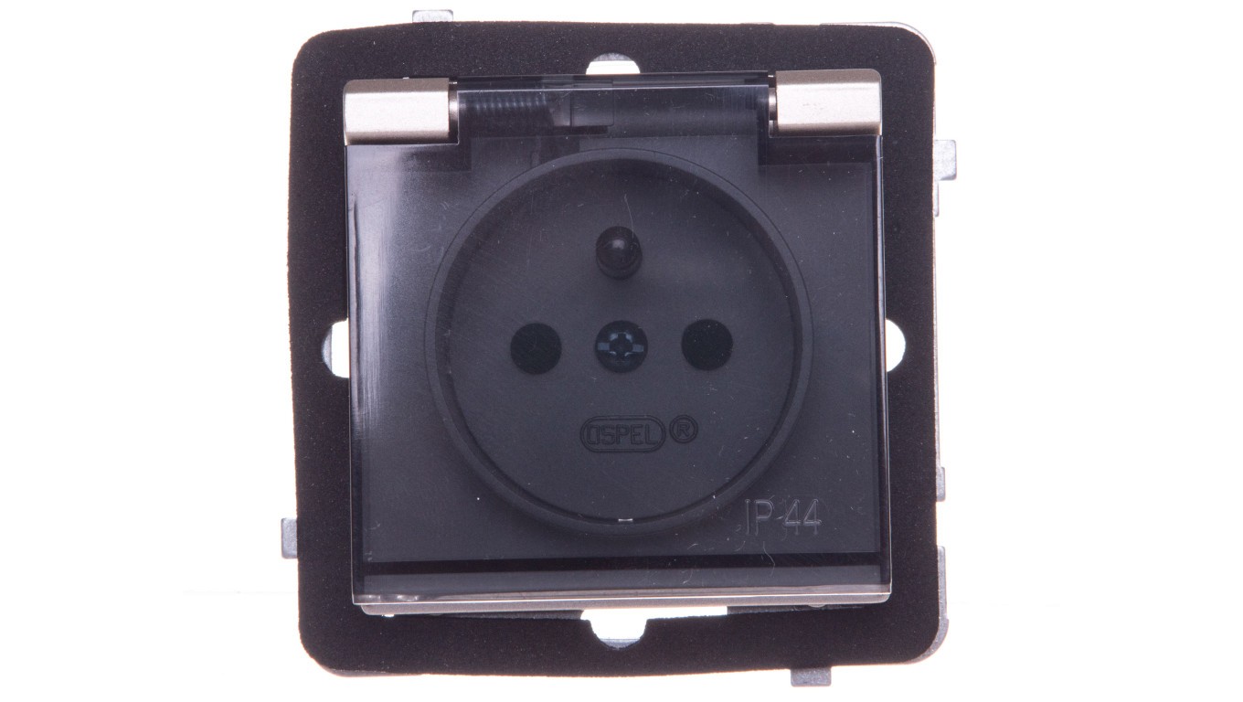 SONATA Gniazdo bryzgoszczelne z/u IP44 z przesłonami klapka przezroczysta szampański złotyGPH-1RZP/m/39/d