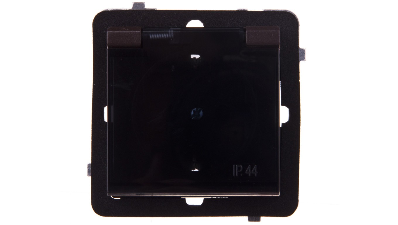 SONATA Gniazdo bryzgoszczelne z/u Schuko IP44 klapka przezroczysta czekoladowy metalik GPH-1RS/m/40/d