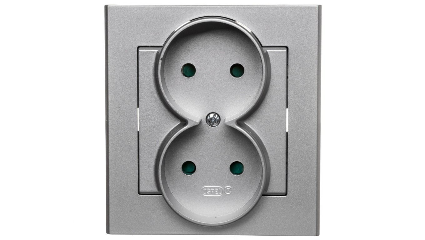 SONATA Gniazdo podwójne b/u z przesłonami srebro mat GP-2RP/38