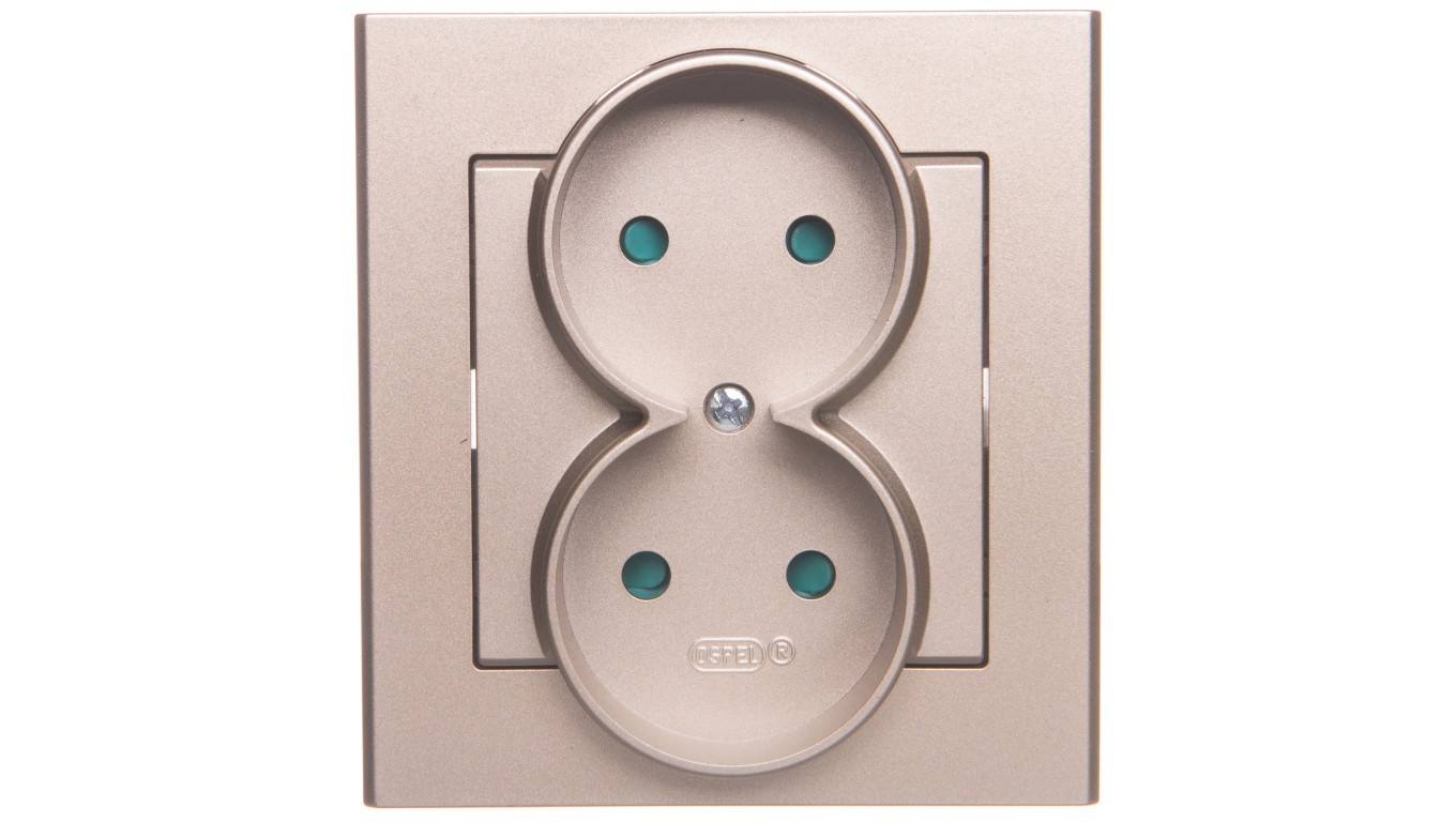 SONATA Gniazdo podwójne b/u z przesłonami szampański złoty GP-2RP/39
