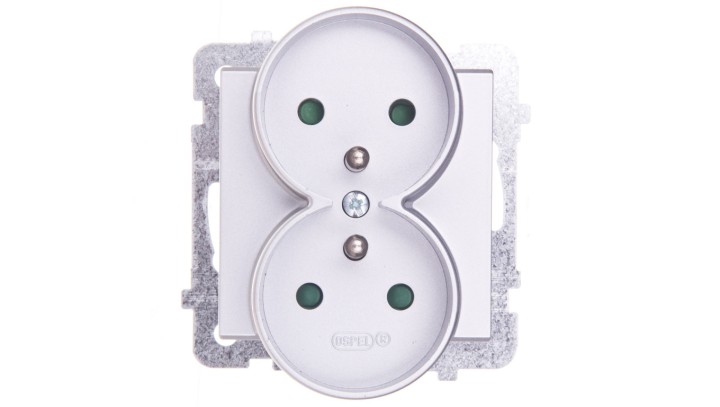SONATA Gniazdo podwójne z/u z przesłonami srebro mat GP-2RRZP/m/38