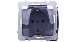 KARO Gniazdo bryzgoszczelne z/u Schuko IP44 z przesłonami klapka przezroczysta czekoladowy metalik GPH-1SSP/m/40/d