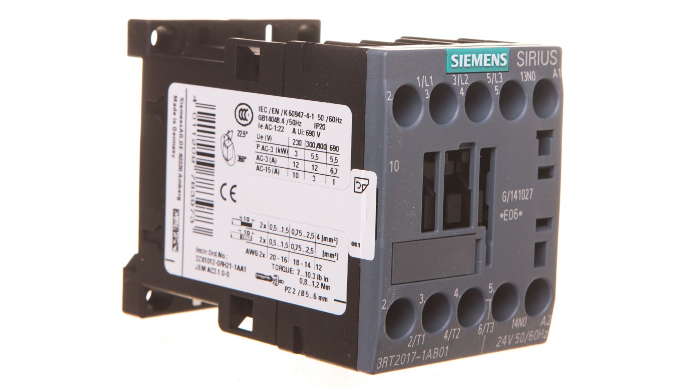 Stycznik mocy 12A 3P 24V AC 1Z 0R S00 3RT2017-1AB01