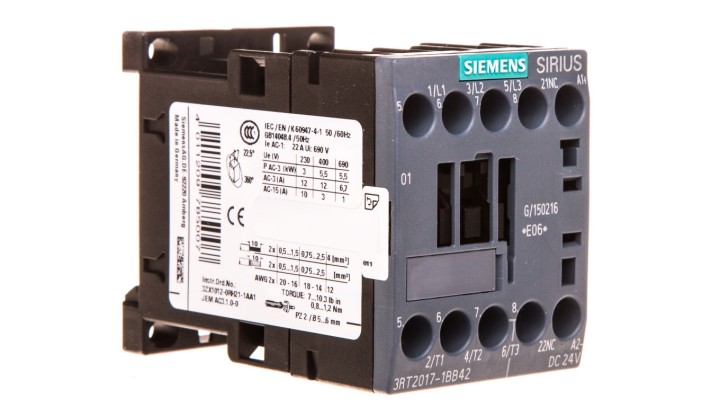 Stycznik mocy 12A 3P 24V DC 0Z 1R S00 3RT2017-1BB42