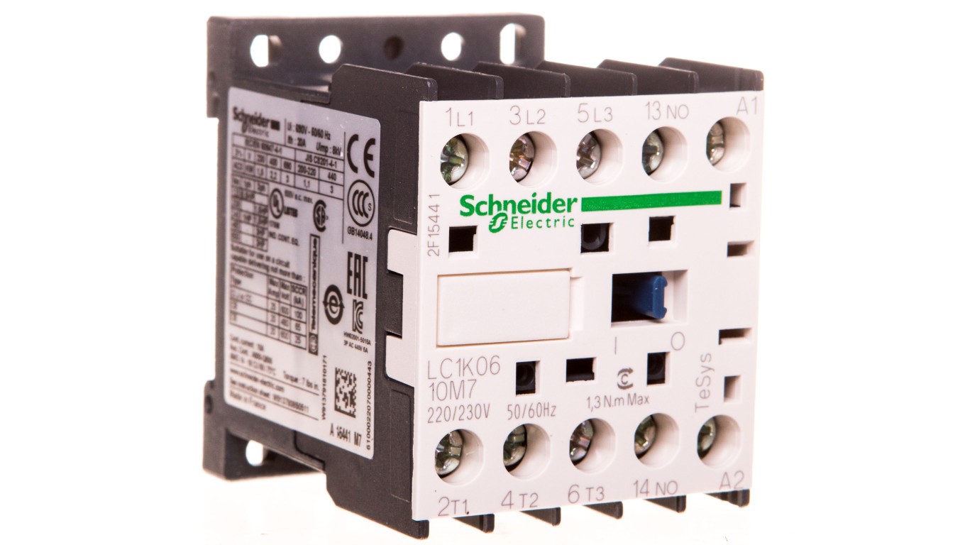 Stycznik mocy, AC3, 6A, 3P, 1NO, cewka 220/230VAC, zaciski śrubowe TeSys K LC1K0610M7