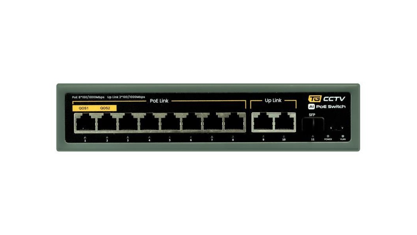 Switch 8x PoE 100/1000 Mbps 802.3af/at + 2x Uplink 100/1000 Mbps + 1x SFP, 120W