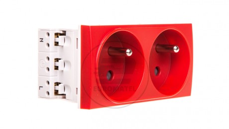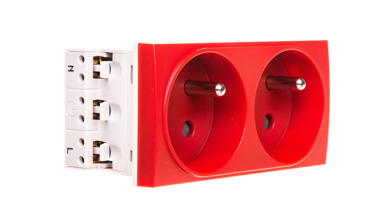 Systo Gniazdo podwójne przelotowe z/u DATA 16A 250V 2x(2P+Z) 4 moduły czerwone WS132