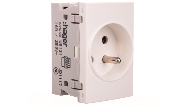 Systo Gniazdo pojedyncze przelotowe z/u 16A 250V 2P+Z 3 moduły białe WS121