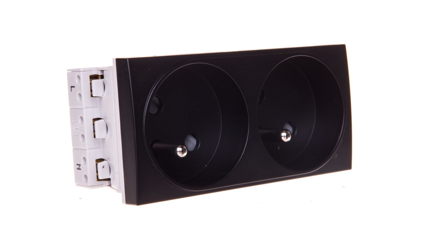 Systo Gniazdo przelotowe podwójne z/u 16A samozaciski 4 moduły czarny WS122N