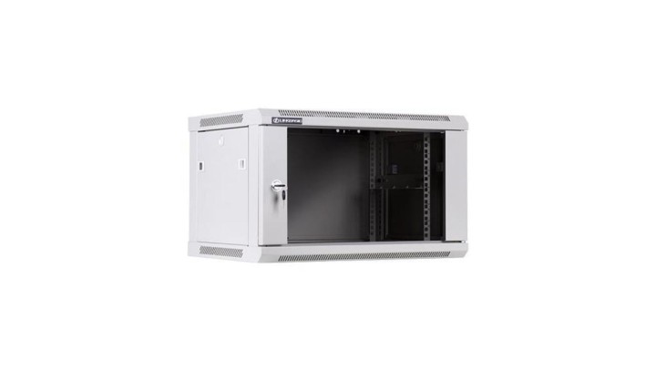 Szafa Rack wisząca 19 6U 600mm szklane drzwi szara