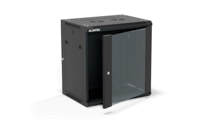 Szafa rack wisząca 19 cali 12U 600x450, drzwi szklane, tył i osłony boczne demontowalne, ZŁOŻONA kolor czarny ALANTEC