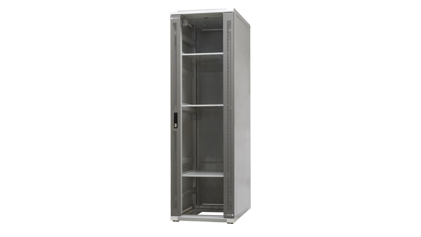 szafa ramowa stojąca EmiterNet Top, 42U, wym. 600X1000x1980 (szer. x gł. x wys. mm), drzwi blacha/szkło w komplecie panel 4 went