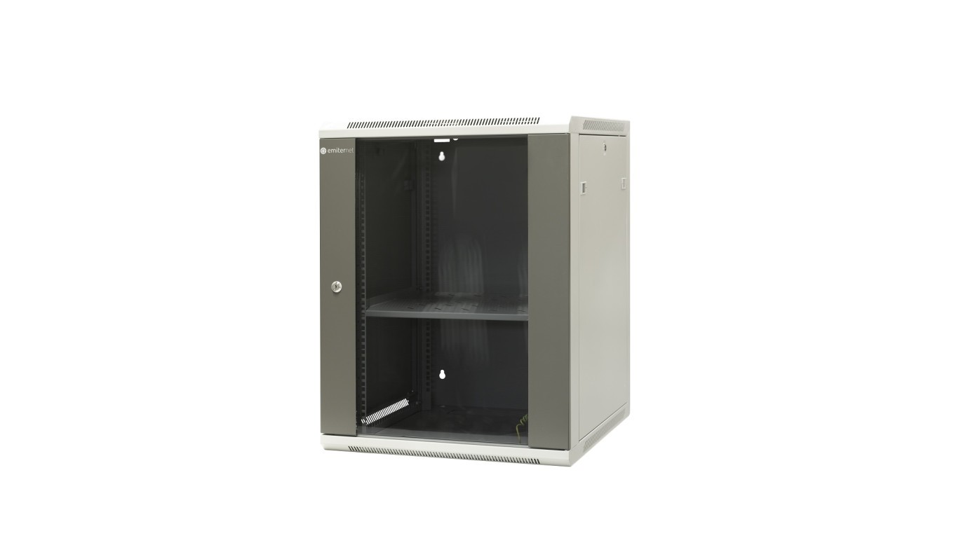Szafa wisząca niedzielona 19 15U, drzwi blacha/szkło, ściągane osłony boczne z zamkiem, 600×600×770 szer./gł./wys. mm RAL: sza