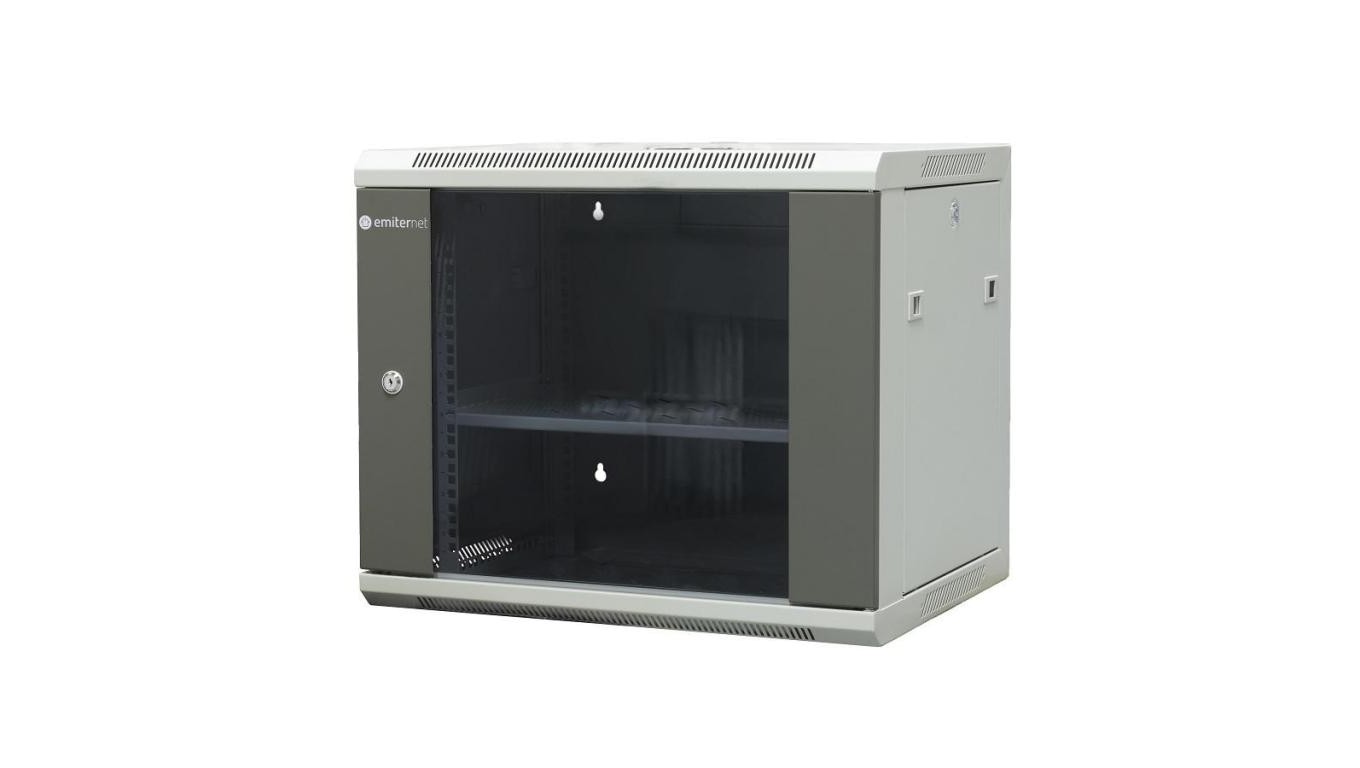 Szafa wisząca niedzielona 19 9U, drzwi blacha/szkło, ściągane osłony boczne z zamkiem, 600×450×500 szer./gł./wys. mm RAL: szafa