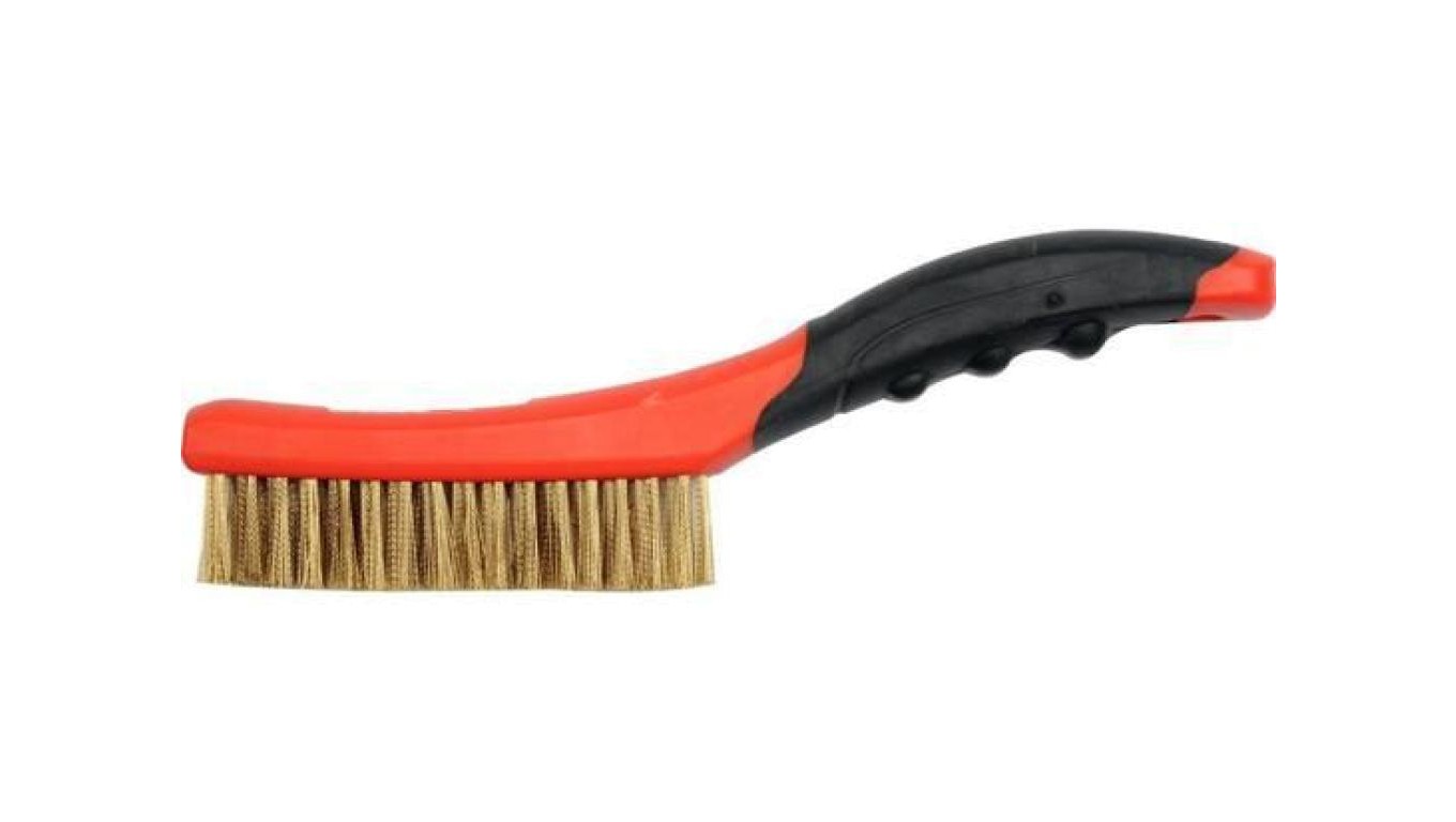SZCZOTKA DRUCIANA 4-RZĘDOWA DRUT MOSIĄDZ, PLASTIKOWA RĄCZKA