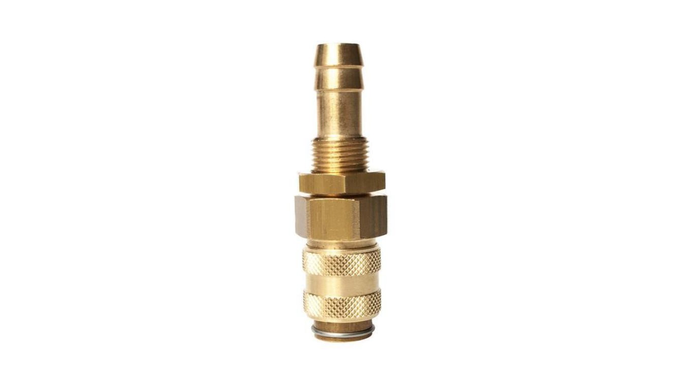 Szybkozłącze pneumatyczne DN5 typ 21, grodziowe do węża fi 9 mm, gniazdo szybkozłącza, mosiądz
