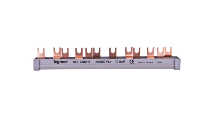 Szyna łączeniowa 2P 63A 10mm2 widełkowa (12 mod.+zasil. 3P+N) BI2-10-12Z 404915