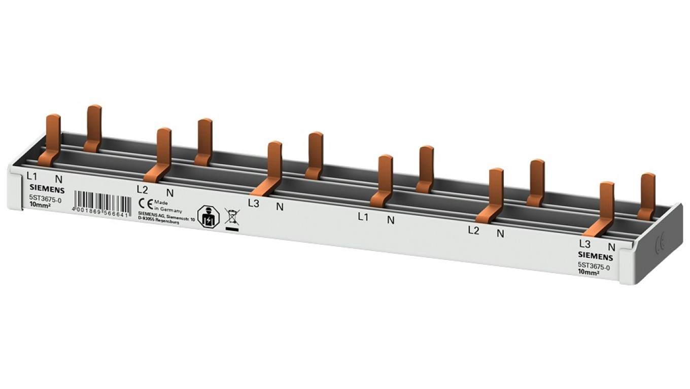 Szyna łączeniowa 3P+N 10mm2 sztyftowa 12 modułowa dla 6x (AFDD 5SM6 + 6x 5SV1 / 5SL60) pełna izolacja 5ST3675-0
