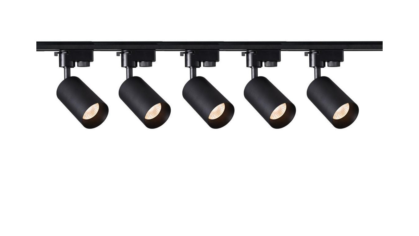 Szynoprzewód 2m czarny + 5x Lampa MALGA T Black + Końcówka zasilająca czarna + Zaślepka czarna