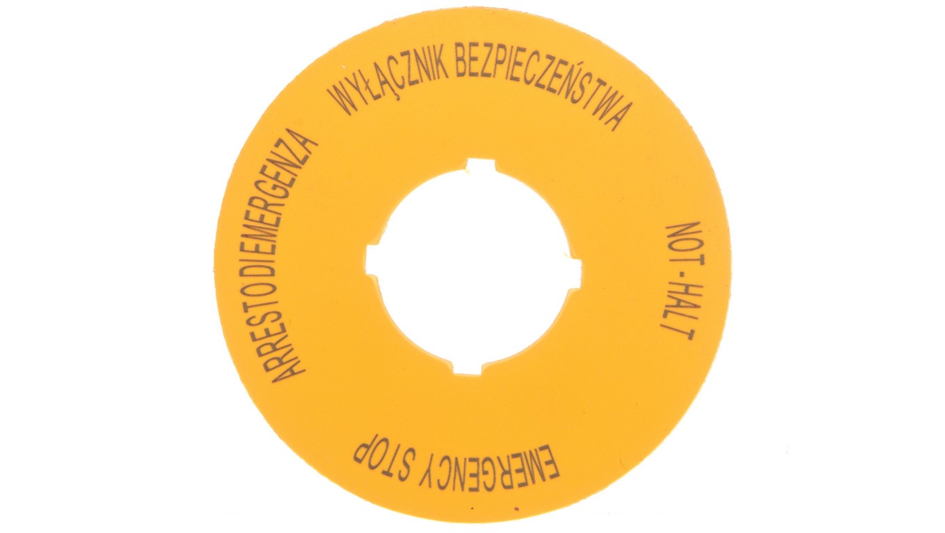 Tabliczka opisowa żółta okrągła EMERGENCY STOP (4 języki) M22-XBK15 167638