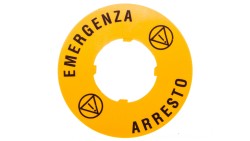 Tabliczka opisowa żółta okrągła fi60 EMERGENCY STOP 8LM2TAU122