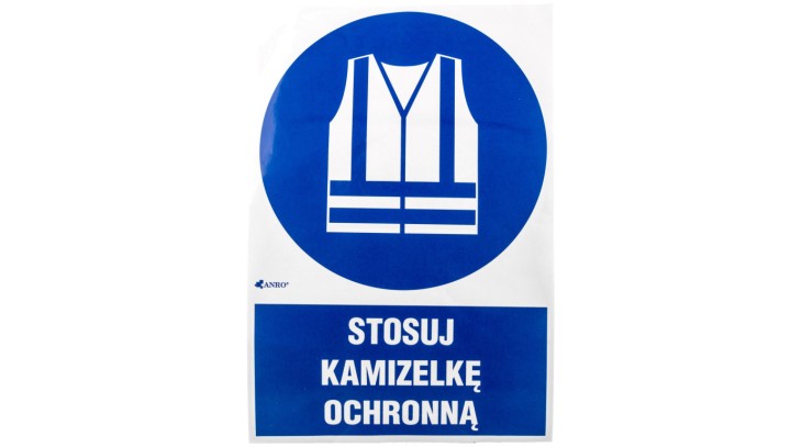 Tabliczka ostrzegawcza /Stosuj kamizelkę ochronną z podpisem/ IM/015/1/C1/F