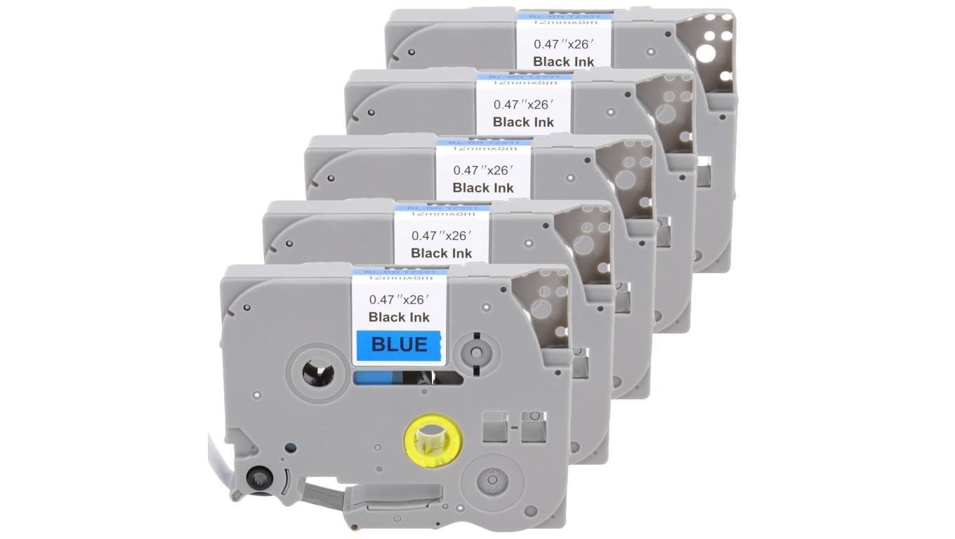 Taśma 5x Tze-531 do drukarki Brother 12mm 8m niebieska taśma czarny nadruk /5szt./