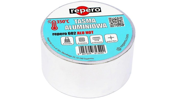 Taśma aluminiowa do kominka o wysokiej odporności termicznej (do +350C) REPERO 602 ALU HOT 50mm/50m