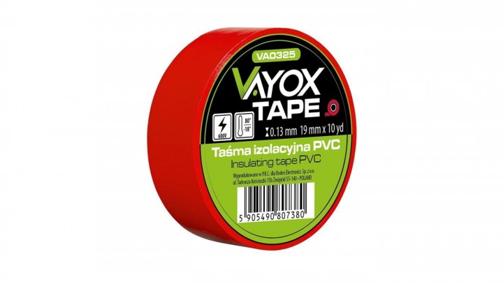 Taśma izolacyjna PVC 19mm x 10yd czerwona VA0325 Vayox