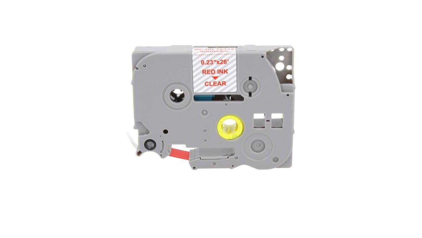 Taśma Tze-112 do drukarki Brother 6mm 8m przeźroczysta taśma czerwony nadruk