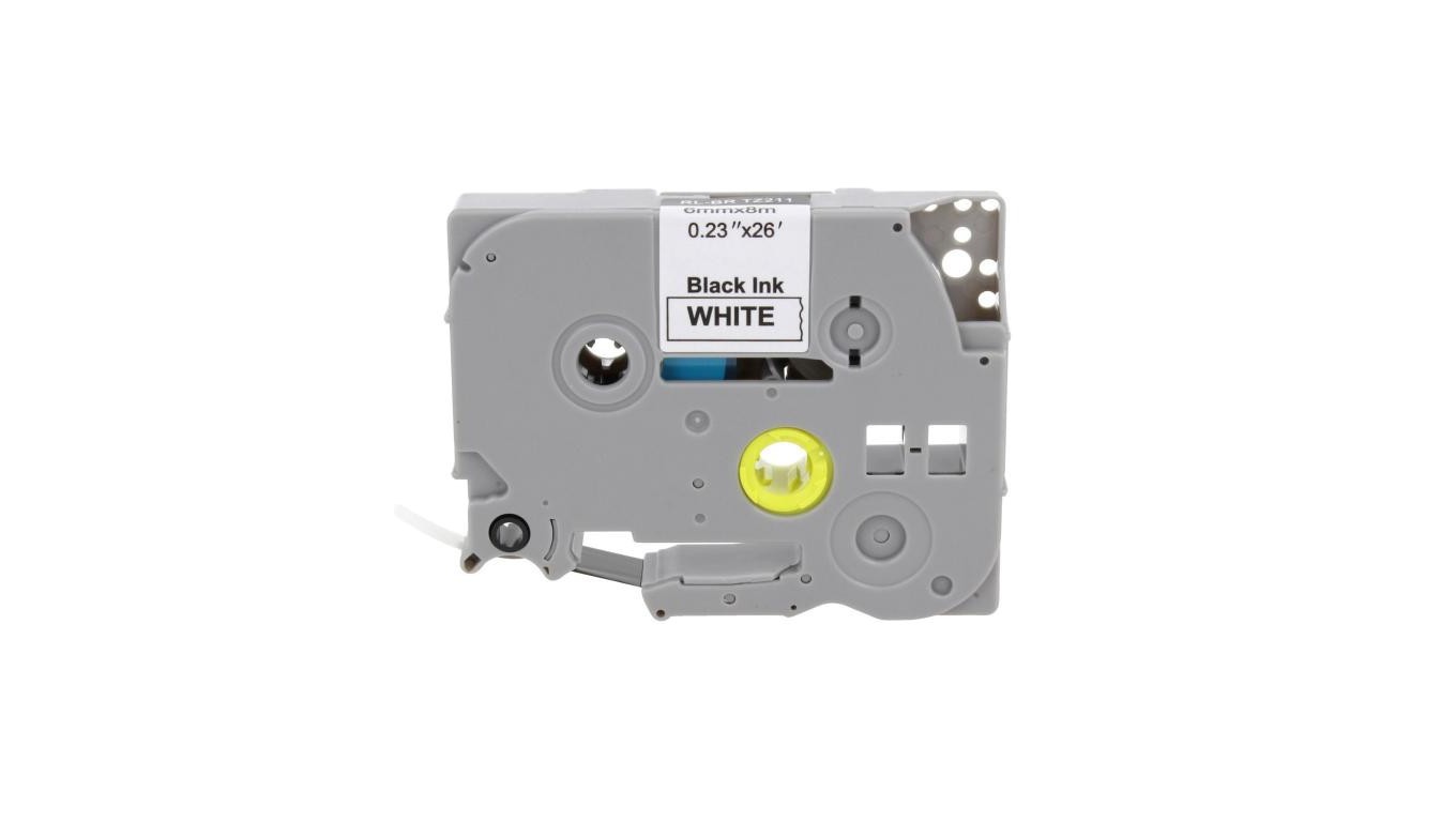Taśma Tze-211 do drukarki Brother 6mm 8m biała taśma czarny nadruk