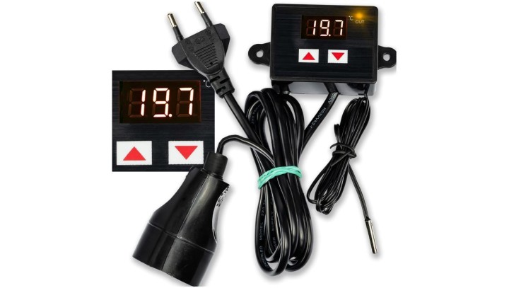 TERMOSTAT ELEKTRONICZNY REGULATOR TEMPERATURY Z GNIAZDKIEM I WTYCZKĄ 230V
