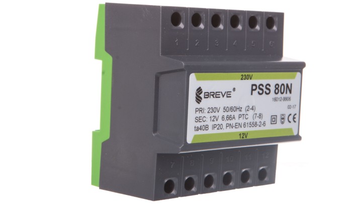Transformator 1-fazowy modułowy PSS 80N 80VA 230/12V /na szynę/ 16012-9906