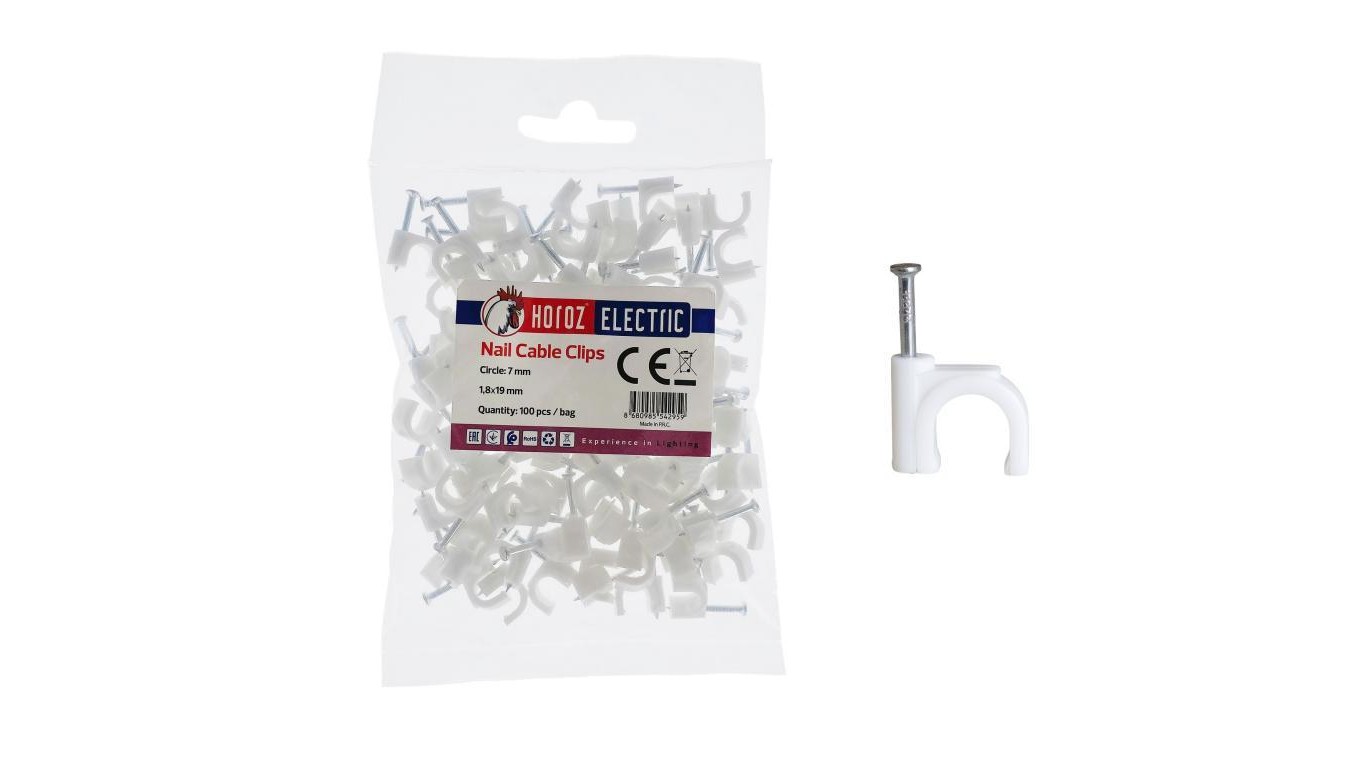 Uchwyt kablowy okrągły typu FLOP fi 7mm biały (opk. 100 szt.) HOROZ