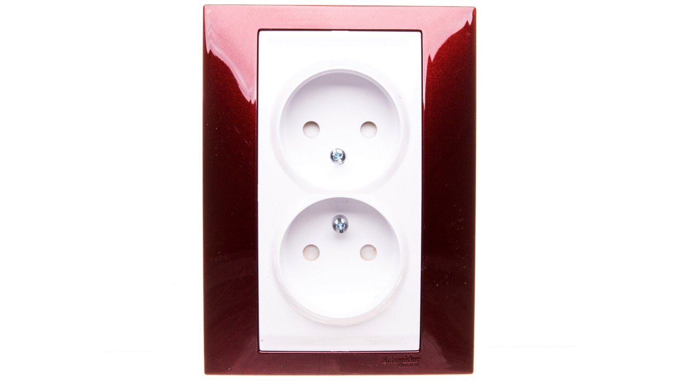 Unica Plus Gniazdo podwójne b/u z przesłoną lazur karminowy MGU63.063.851