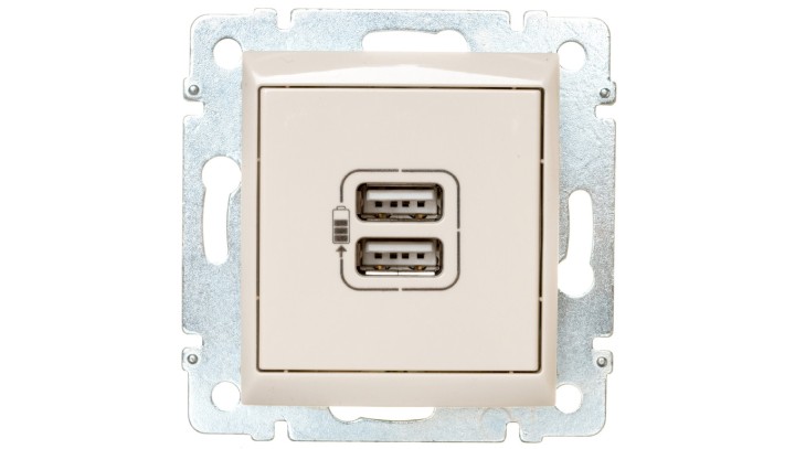 VALENA Gniazdo zasilające 2xUSB 5V 1500mA kremowe 774170